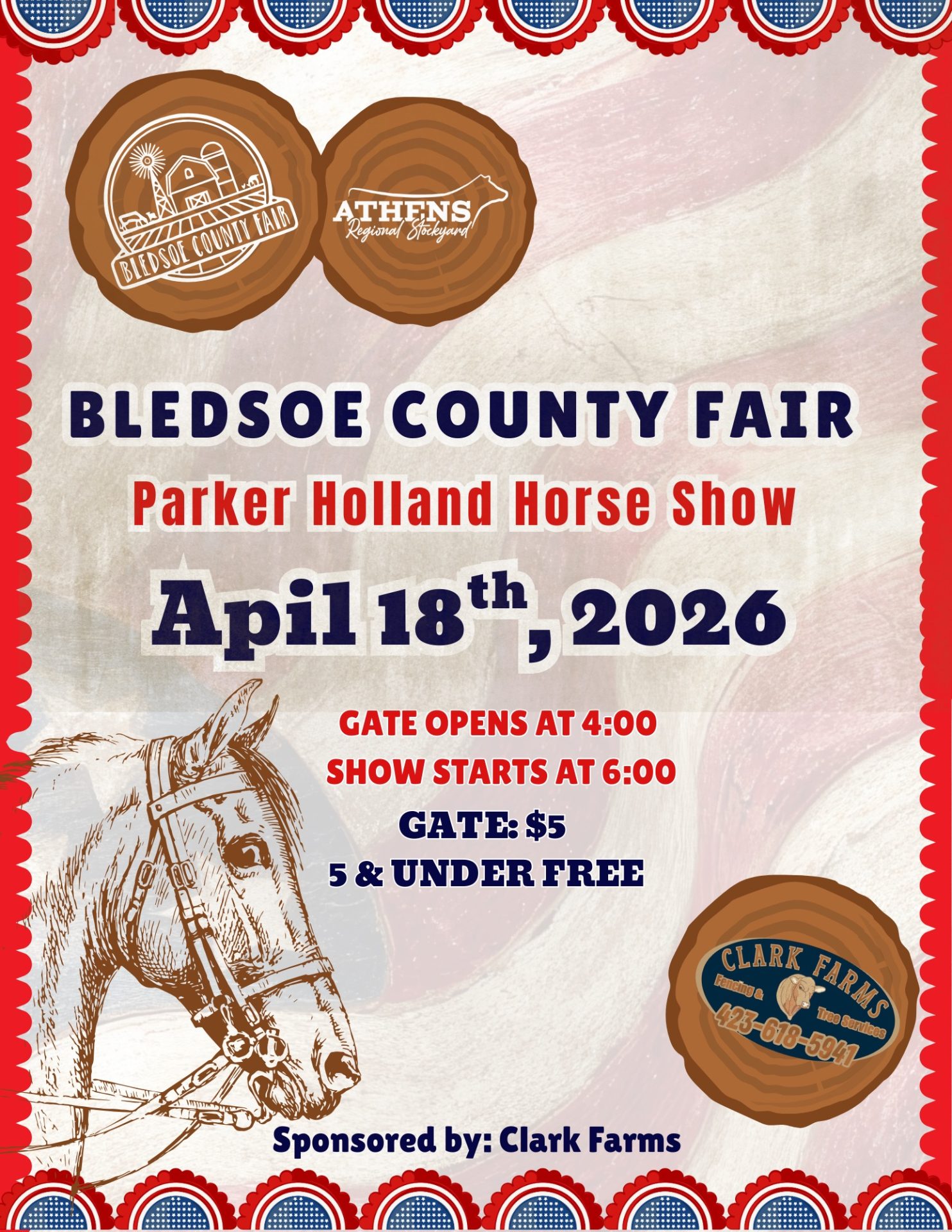 Join us at the Bledsoe County Fairgrounds for an evening of tradition, talent, and true Tennessee horsemanship.