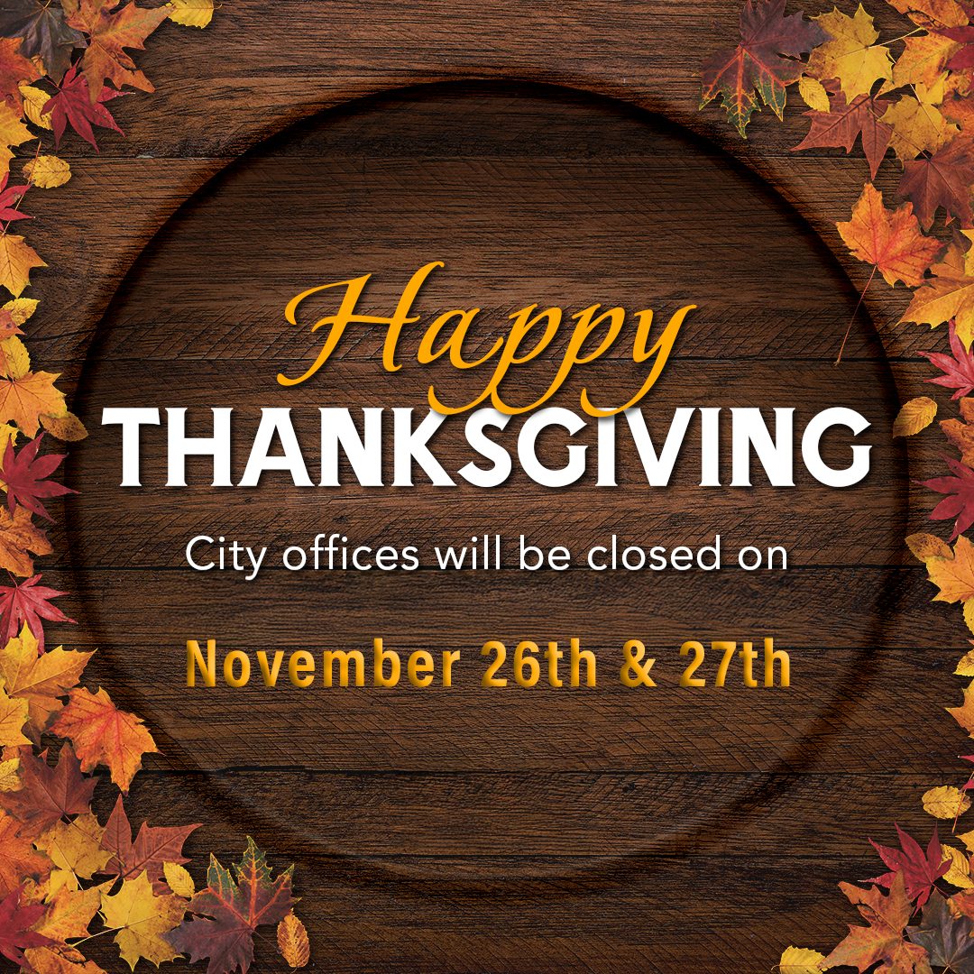 – City offices will be closed Thursday, November 26, and Friday, November 27, 2026